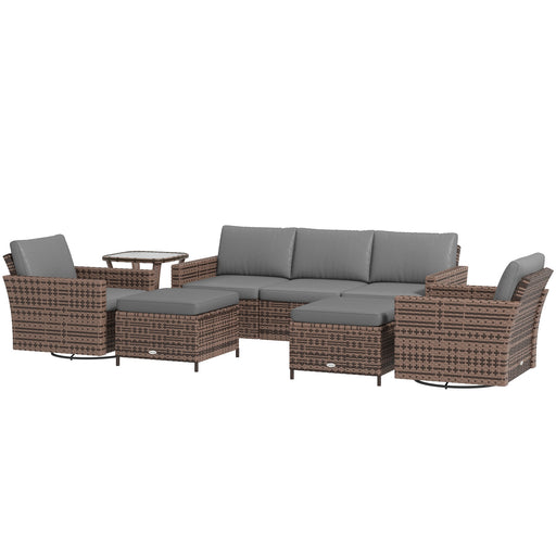 Outsunny Wicker Wonder - 6PC Outdoor Ensemble with Cozy Sofa, Swivel Rockers & Ottomans in Mixed Gray