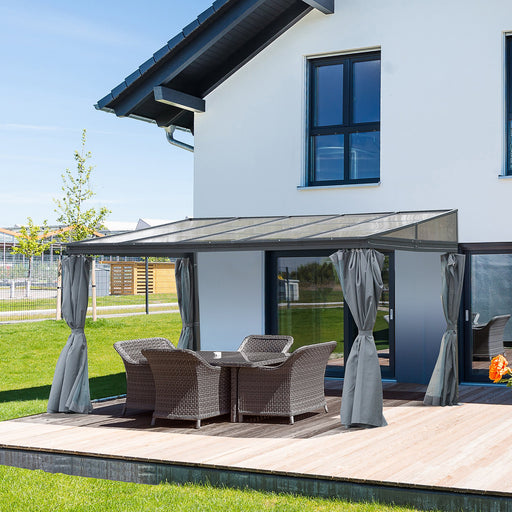 13' x 9.5' x 8' Outdoor Pergola PC Roof Gazebo Party Tent Garden Sun Shelter Waterproof and UV protection with Curtains, Netting, Grey