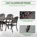 7-Piece Patio Dining Set, Cast Aluminum Outdoor Furniture Set with 6 Armchairs, 1 Table and Umbrella Hole, Bronze