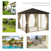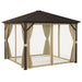 10' x 10' Hardtop Gazebo Canopy w/ Galvanized Steel Roof, Aluminum Frame, Outdoor Gazebo w/ Hook, Netting & Curtains for Patio, Garden, Brown