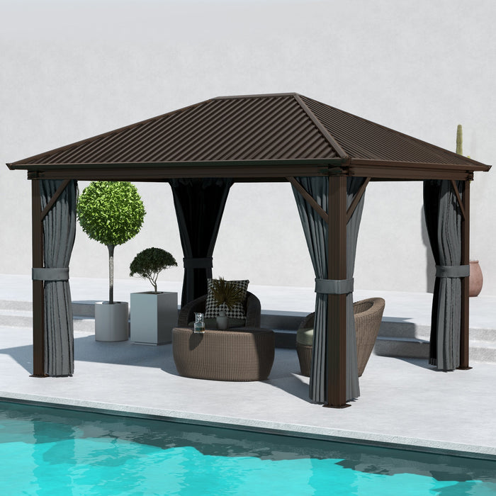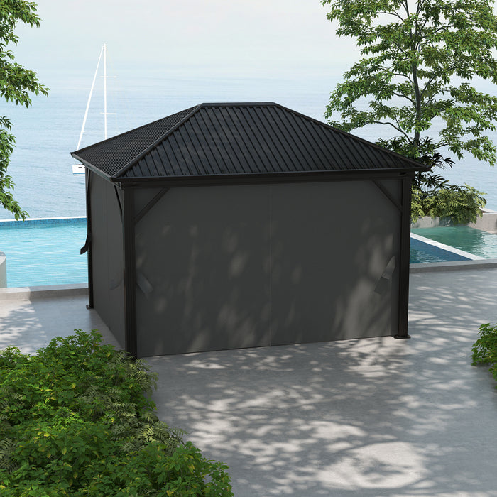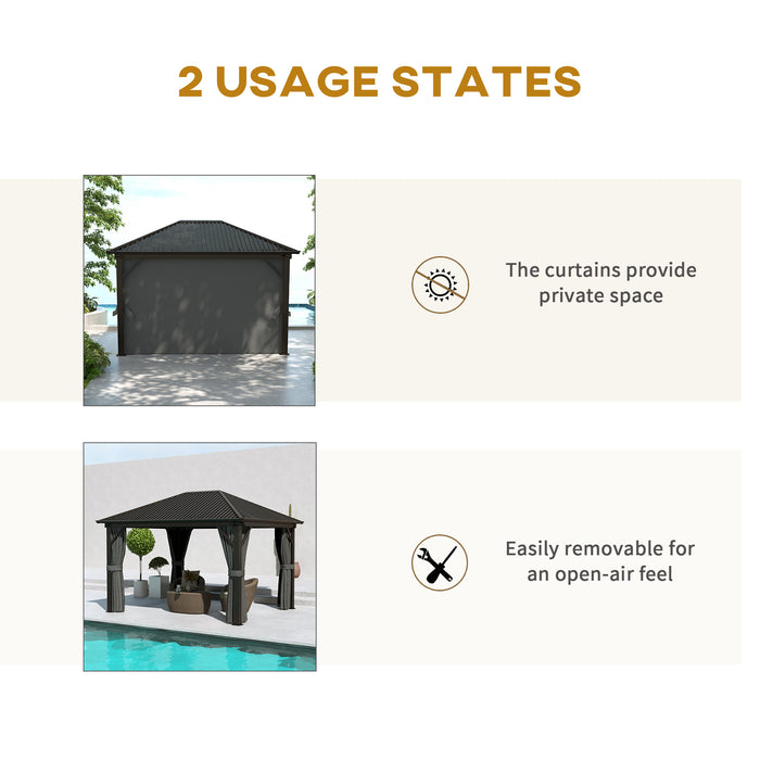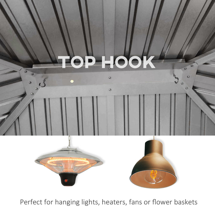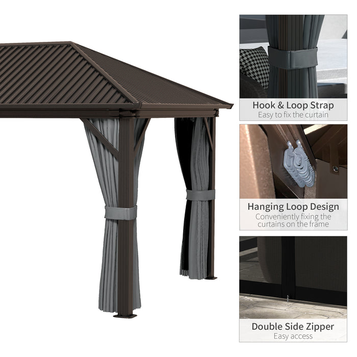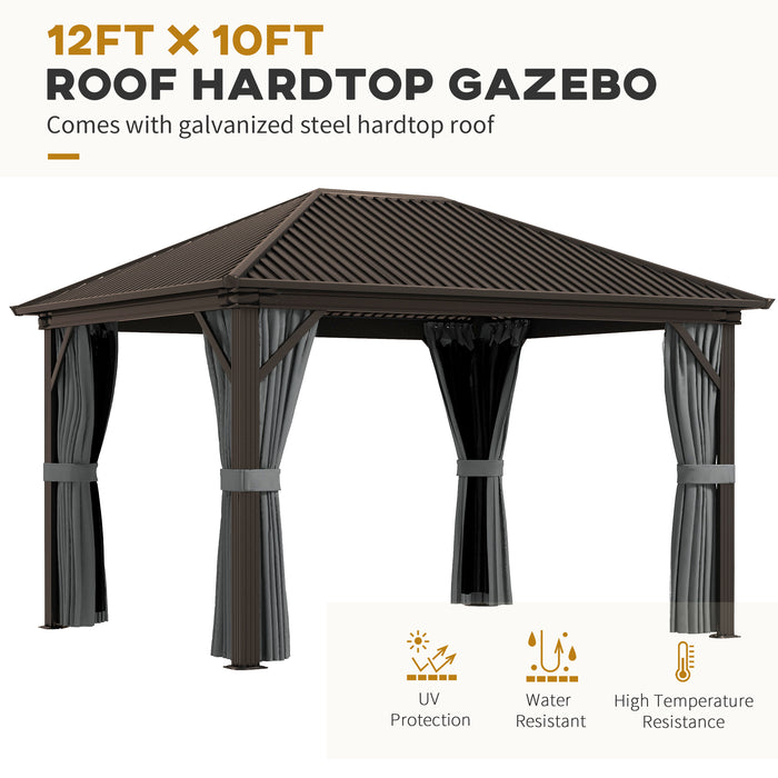 10' x 12' Hardtop Gazebo with Galvanized Steel Roof, Metal Canopy with Top Hook, Netting and Curtains, Dark Gray