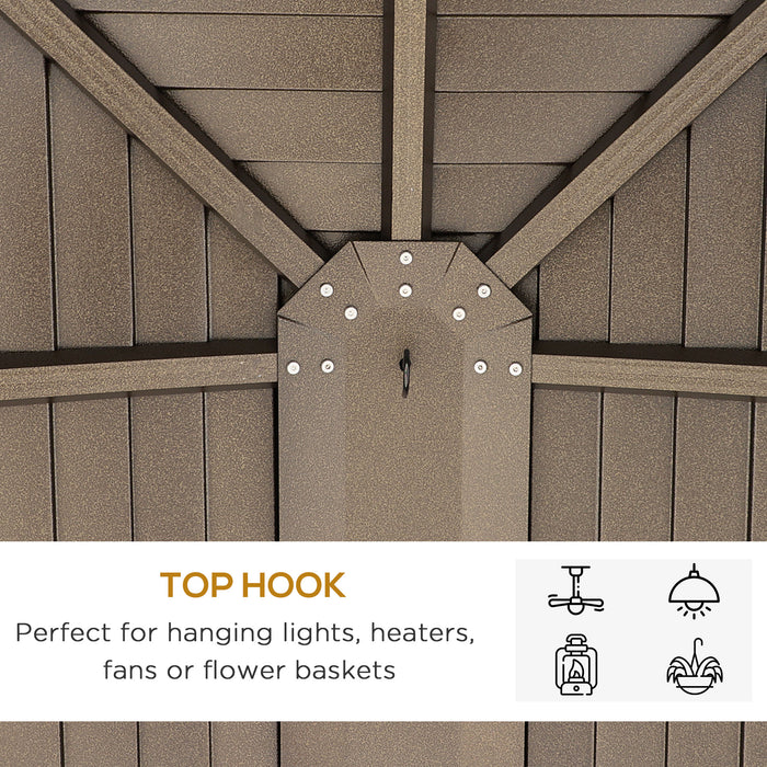 10' x 14' Hardtop Gazebo with Curtains, Netting, Pavilion with Steel Roof Ceiling Hook for Garden Patio, Brown
