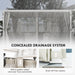 • - Draining Roof: Our pergola has a concealed drainage system to prevent water weight build up. Each louver up top is fitted with a gutter to redirect water through the pillars and down to drainage holes below.