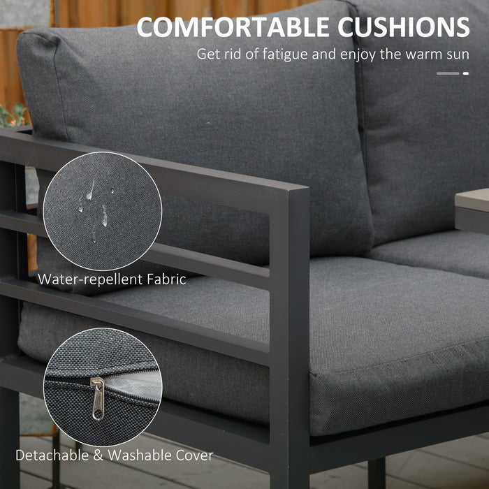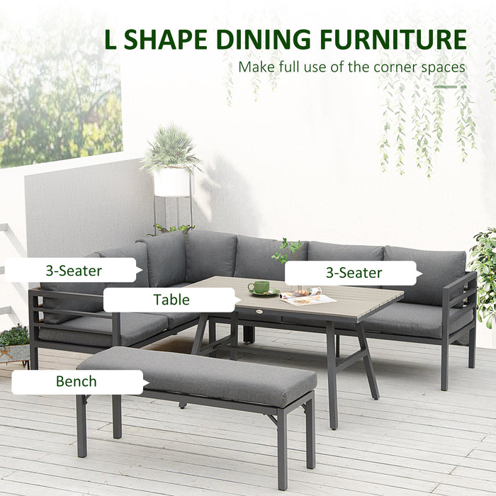 4PC Aluminium Patio Furniture Set Grey Outdoor Dining Sofa Sectional with Bench Table Cushions